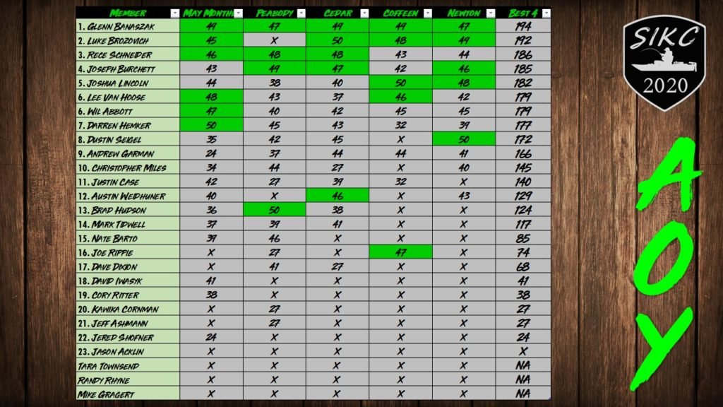 Despite the uncertainty of the year, the club completed five AOY-qualifying events plus the SIKC Classic Championship, showcasing a growing field of skilled anglers and the emergence of new rivalries that would define the next era of the club.